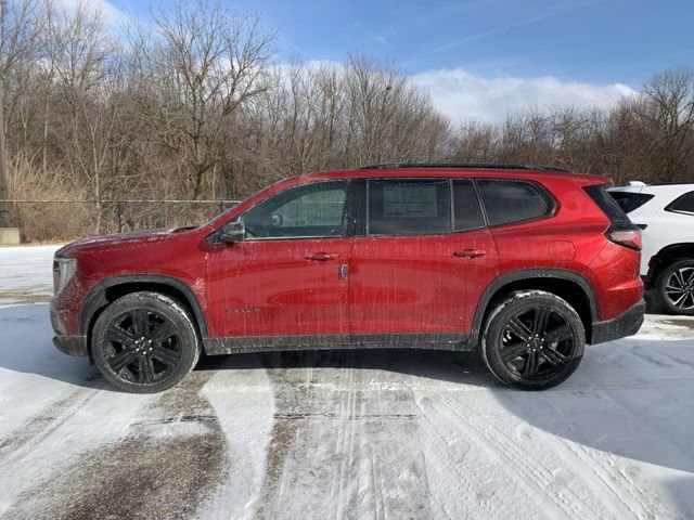 $2,574 off MSRP! Ron Marhofer Buick GMC is pumped up to offer this 2026 GMC Acadia Elevation in Volcanic Red Tintcoat with After Dark Cloth. This Acadia is very well equipped with: .